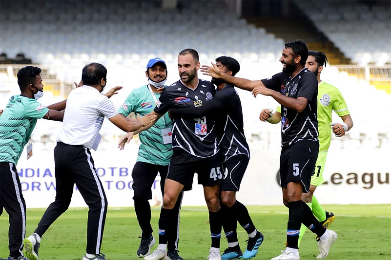 However, one long ball from the Real Kashmir defence turned the game around in the 34th minute when Lukman Adefemi, straight onto the goal, was hacked down by Kingsley Eze. Eze was shown a straight red card as the Black Panthers were reduced to 10-men.