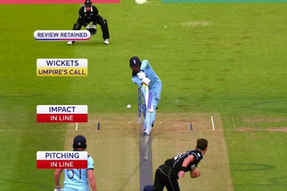Chasing New Zealand's 241/8, Jason Roy was apparently out, but umpire Marais Erasmus's on-field decision of not out saved the England opener. Trent Boult trapped Roy in front with the first ball of the innings, and the review returned with the ball hitting the leg stump. But it was given an umpire's call to the chagrin of Kiwis.