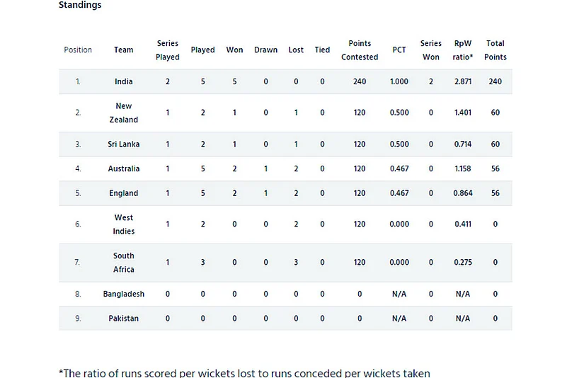 The top two teams at the end of the league will play the final in the UK in June 2021 with the winners crowned the world Test champions.