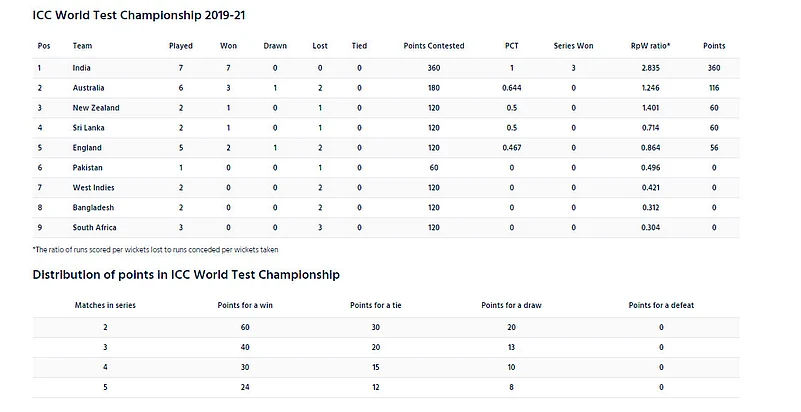 The top two teams at the end of the league will play the final in the UK in June 2021 with the winners crowned the world Test champions.