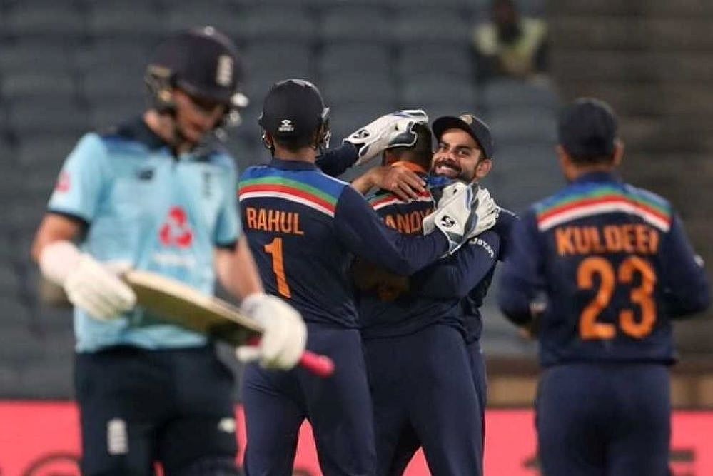 Having seen his left-arm spin disappear under Roy and Bairstow's early assault, Krunal returned to claim the important wicket of Sam Curran (12) as England subsided meekly – seamers Prasidh Krishna (4-54), Bhuveneshwar Kumar (2-30) and Shardul Thakur (3-37) doing the bulk of the damage to dismiss Eoin Morgan's side for 251 in 42.1 overs.