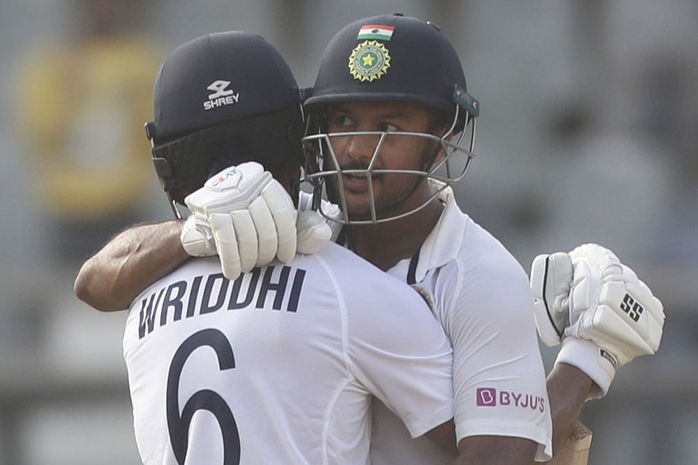 Under pressure to prove his worth, Mayank Agarwal made the best statement possible with a superb hundred as India recovered from a sudden top-order collapse to reach 221 for 4 in two extended opening day sessions against New Zealand in the second Test in Mumbai on Friday.