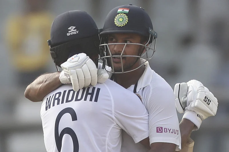 Along with another reserve player in Wriddhiman Saha (25 batting, 53 balls), Agarwal added another 61 runs before the close of play.