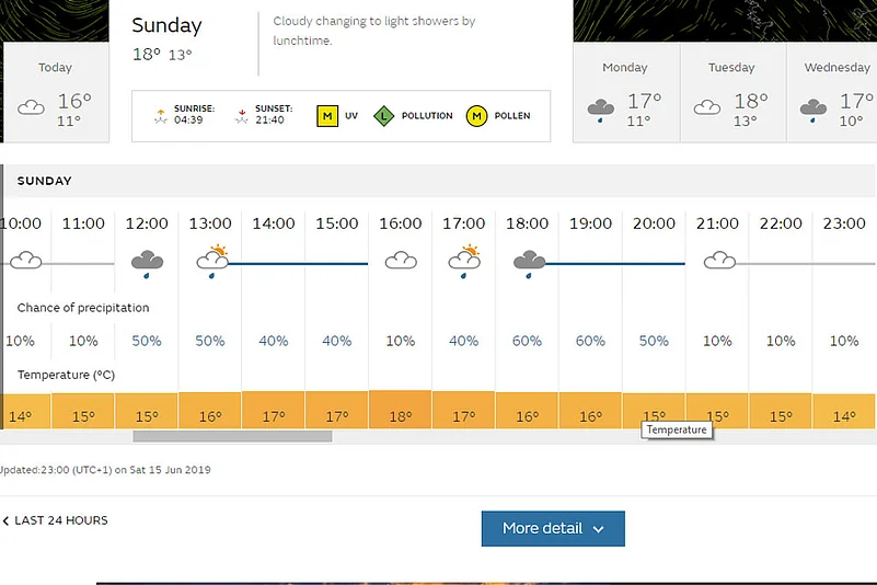 The match is expected to start on time (3:00 PM IST/ Local time - 10:30 AM BST), after the toss at 2:30 PM IST. This optimism is derived from the forecast that there will be no rain in the morning. And as always, forecasts can be wrong.