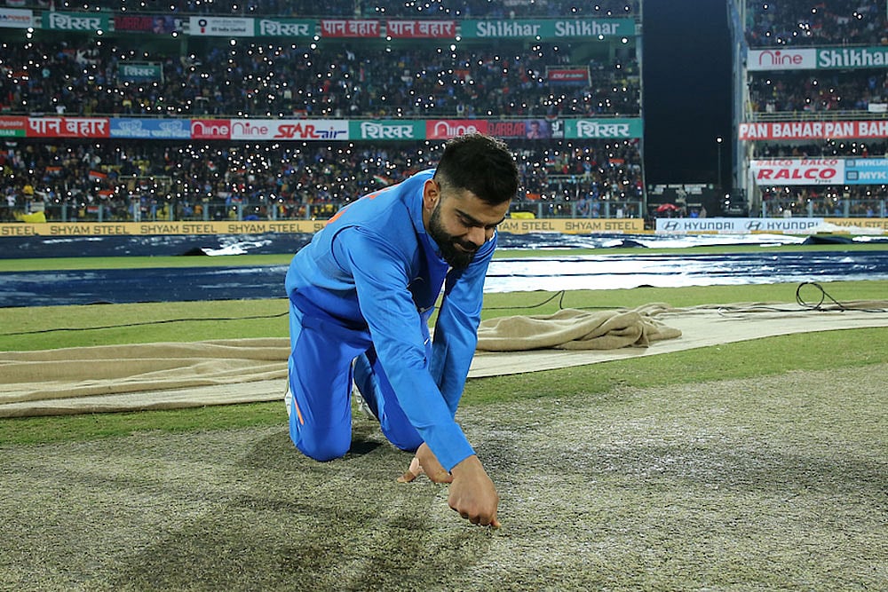 It started pouring 15 minutes before the scheduled time after India skipper won the toss and elected to bowl. The rain spell lasted less than an hour but the ground could not be prepared in time.