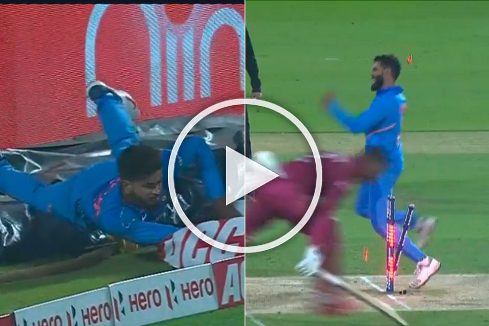 During India's series-leveling 107-run win over the West Indies in the second ODI match at Visakhapatnam on Wednesday, Shreyas Iyer produced a sensational fielding effort to dismiss dangerous Shimron Hetmyer.