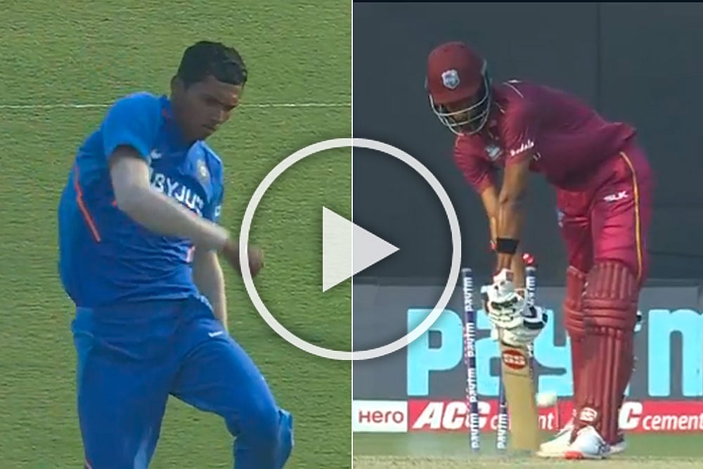 Saini first got the wicket of dangerous Shimron Hetmyer (37 off 33), caught by Kuldeep Yadav at deep square leg, for his maiden ODI scalp in the 30th over. The 27-year-old pacer then produced a deadly yorker in the 32nd over to send Chase (38 off 48).