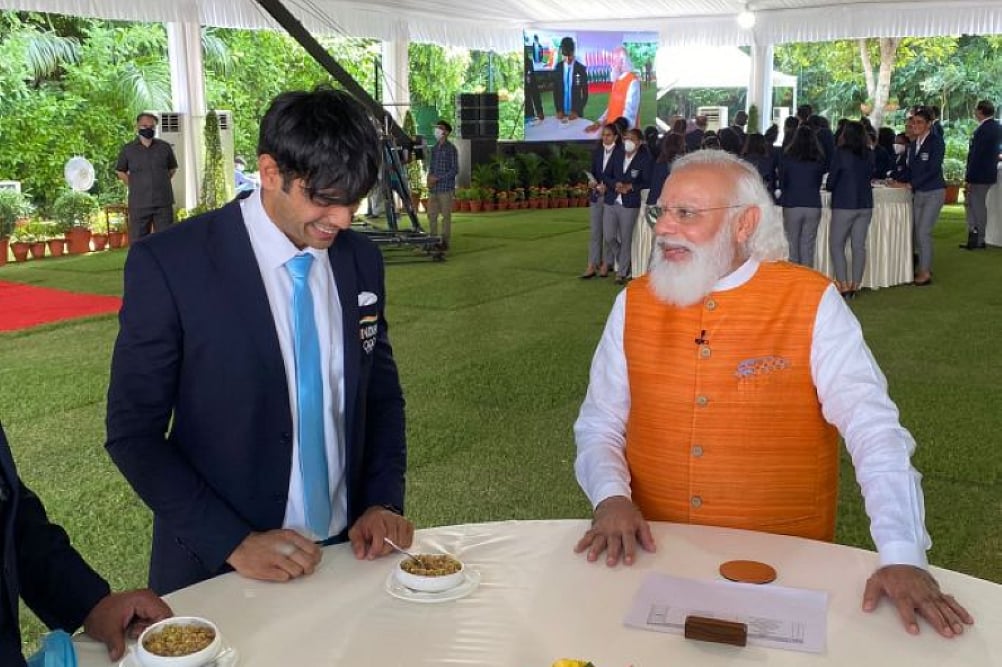 Modi, who had applauded the Indian athletes' tremendous show during the 75th Independence Day celebration at the Red Fort on Sunday, was seen talking to Chopra and bronze medallist PV Sindhu, who become only the second Indian and first woman to win two Olympic medals.