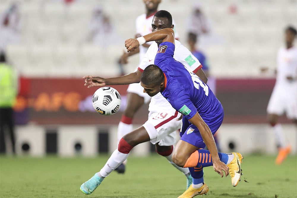 The gulf in the class was there for everyone to see, but 10-man India produced a valiant effort in their 0-1 defeat against Asian heavyweights Qatar. The defeat in their Group E, joint qualifying match for the 2022 FIFA World Cup and 2023 AFC Asian Cup tournaments left India in fourth place, just above Bangladesh, who earlier played out a draw with Afghanistan. Qatar, still undefeated in the campaign, sit pretty at the top with six wins from seven outings. They have 19 points. Oman are second with 12 points from five matches (four wins and a defeat). Afghans are third with five points from six matches (1 win, 2 draws and 3 defeats). India have three points (3 draws, 3 defeats), while Bangladesh have two points (2 draws, 4 defeats).