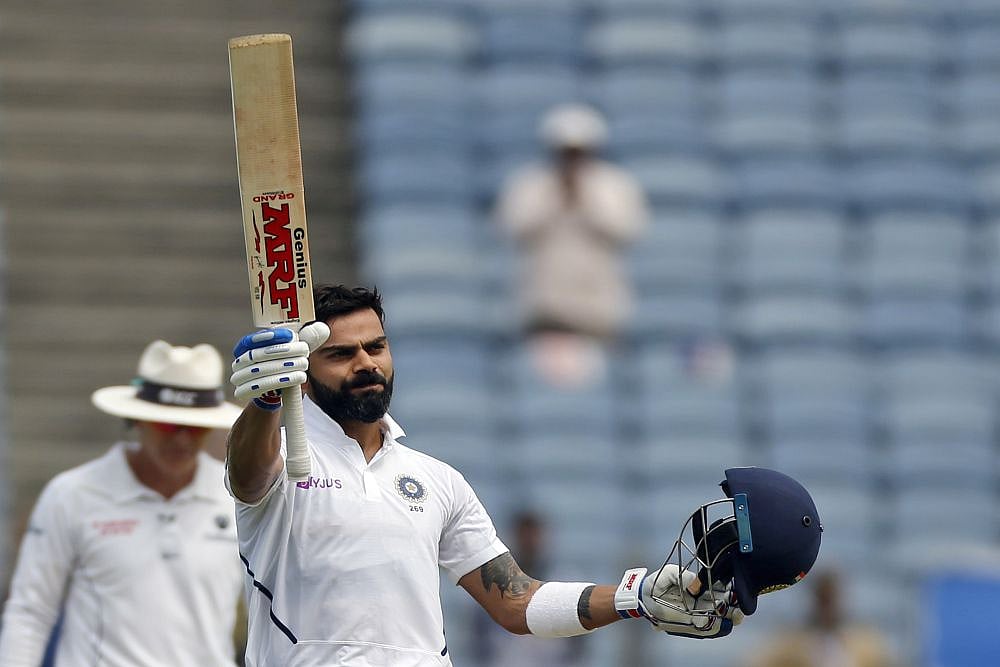 14:41 hrs IST: Full from Muthusamy, outside leg stump, Kohli clipped fine past square leg for two runs and that's his seventh Test double ton. Also, he reaches the landmark of 7,000 Test runs. What a player! Make it a triple-century now! South Africa is the sixth opposition against whom Kohli has scored a 200. India are 483/4. Jadeja 29*