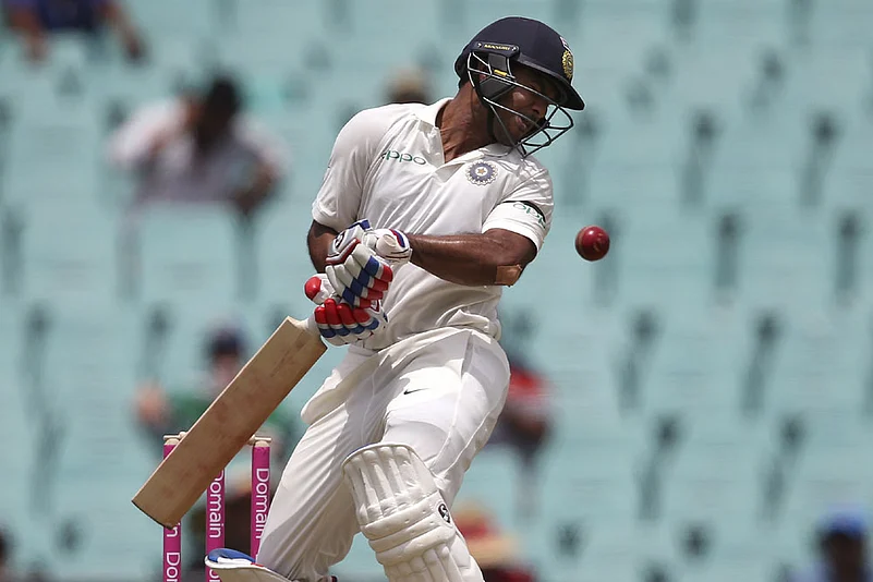 The home side then resorted to run-saving tactics once again, and moved to a shorter length, targeting the batsmen's bodies. Pujara was hit a couple of times, once on the head.