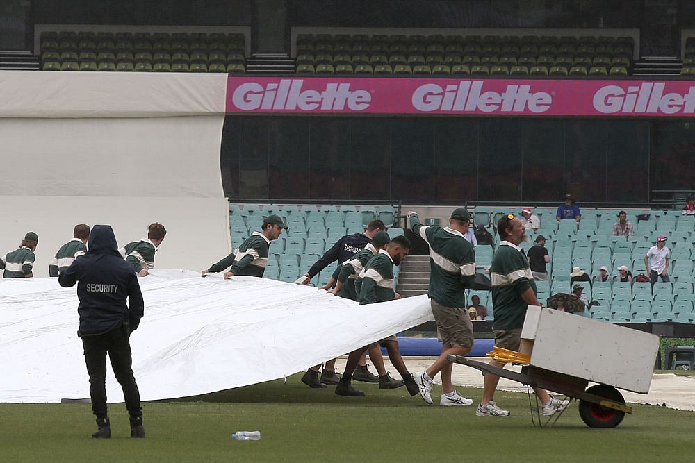 Covers have been on throughout the morning even though it has been light rainfall with dark clouds hovering over Sydney Cricket Ground.