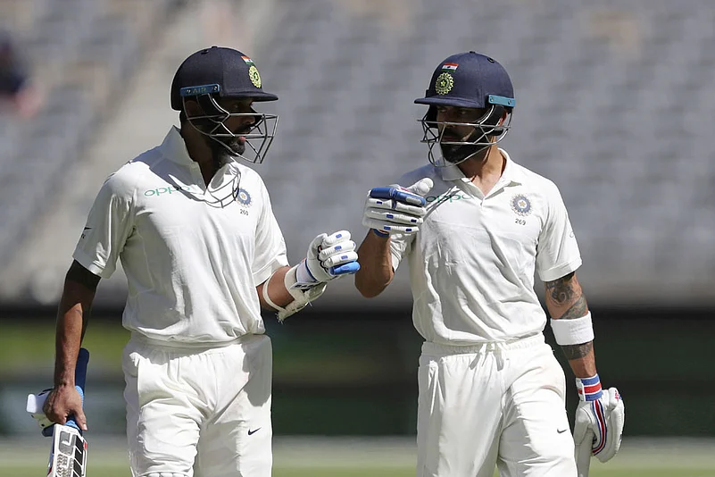 Agarwal provided the base with a confident half-century before Kohli and Pujara steered India to a solid score. Agarwal, drafted into the squad following the failure of KL Rahul and Murali Vijay, responded with a 76-run knock off balls, sorting out India's opening woes to some extent.