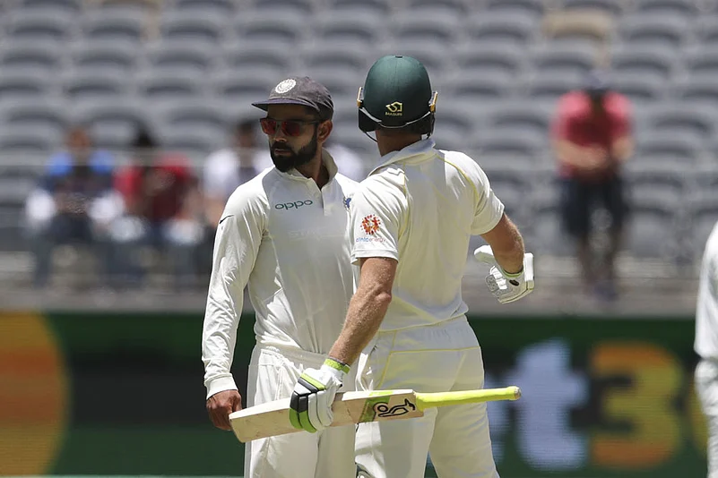 During the 71st over of the Australia innings bowled by Jasprit Bumrah, the respective captains were seen exchanging words after Kohli decided to field close to the non-striker and on-field umpire Chris Gaffaney warned both the players.