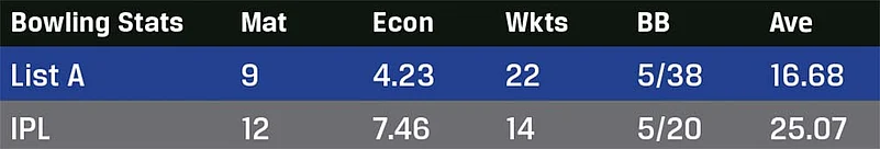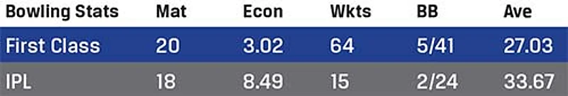 This big-hitting batsman has managed to hold his own despite all the uncertainty in his state. A leg-spinner, he was first noticed after a good domestic season. Mentored by Irfan Pathan, Samad is the fourth player from the state to enter the IPL. Coming lower down the order to bat, he has had a decent run, with a couple of 20s and a wicket from seven games.