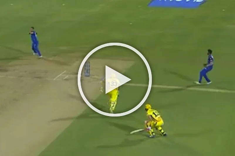 That happened in the very first over of the CSK innings. du Plessis played the third ball of the over, bowled by Trent Boult, to point then the openers went for a quick single. But what really happened was, both the batsmen were heading towards the non-striker's end after Axar Patel returned the ball to Colin Munro.