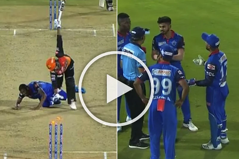 In the last over of the SRH innings, Keemo Paul delivered the fifth ball for a wide to Hooda. The batsman then ran for a quick bye, only to collide with the bowler even as Rishabh Pant hits the stumps at the non-striker's end. It caught Hooda well short. And the umpire gave the batsman out.