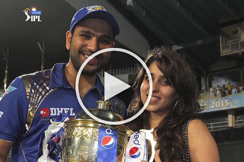 "2015 which is quite special. This was the year we got engaged. The final was a few days before I got engaged to Ritika. As you can see, I am blushing here (in the photo). And Ritika as well, she was not in this to click a picture. I wanted her to be a part of it, so I called her," Rohit told IPLT20.com.