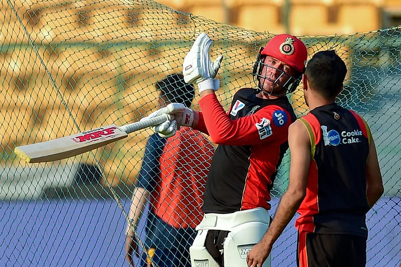 RCB players AB de Villiers and Yuzvendra Chahal during a practice session, ahead of the Indian Premier League 2019 match between Royal Challengers Bangalore and Mumbai Indians at Chinnaswamy Stadium, in Bengaluru. PTI Photo