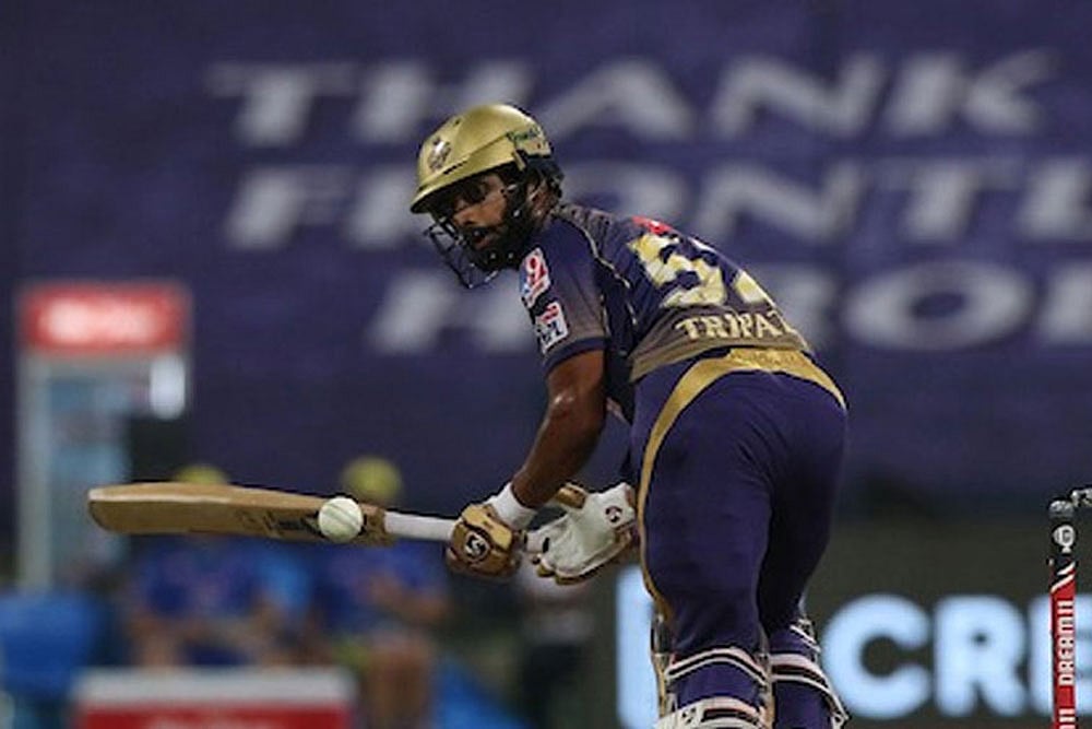 Kolkata Knight Riders batsman Rahul Tripathi was reprimanded for breaching the Indian Premier League's (IPL) Code of Conduct during his side's match against Sunrisers Hyderabad, in Abu Dhabi on Sunday.