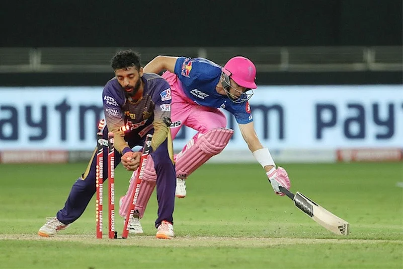 In the next over, skipper Steve Smith tried to slog every ball against his Aussie teammate Pat Cummins and even survived a dropped catch before being dismissed for 3. Shivam Mavi, Kamlesh Nagarkoti and mystery spinner Varun Chakravarthy then claimed two wickets each to derail Royals' chase.