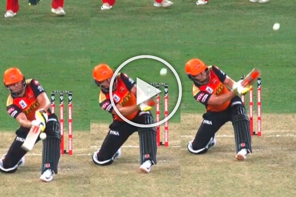 Playing an outlandish shot, Bairstow knelt to scoop the fourth ball of the ninth over for a six. He, in fact, followed that with a four. Watch that stunning shot here: