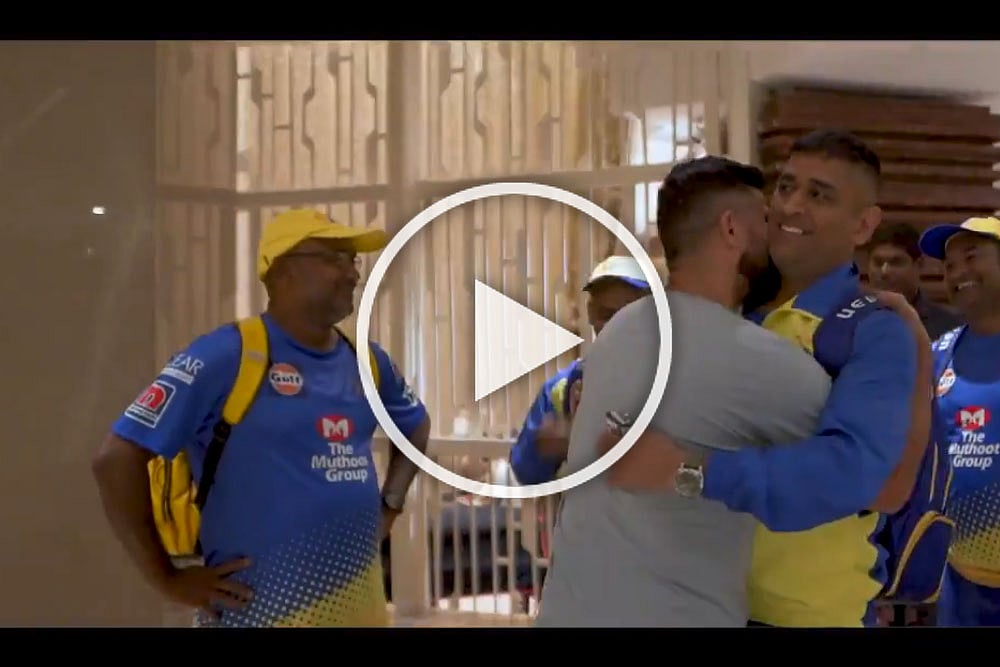 Dhoni and Raina share a close bond, having shared the dressing room on national team duty too. In the video, Dhoni and Raina greeted each other with a hug, and then Raina kissed him on his neck.