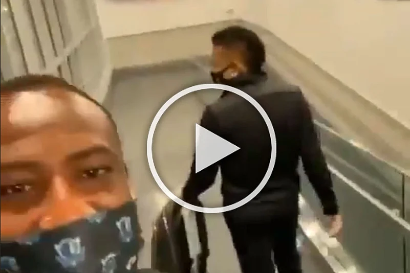 "Look who's on a plane to India. See you soon, big man!", KKR wrote with a photograph of Russel wearing a mask on the flight.
