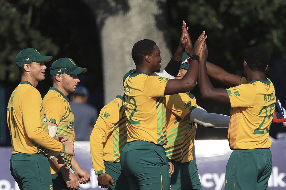South Africa was restricted to a sub-par 165-7 bolstered by tailender Kagiso Rabada's four boundaries in the last over, but Ireland couldn't round up a chase. At 46-5 in the eighth over, it was all but over, but the end was dragged out to 132-9.