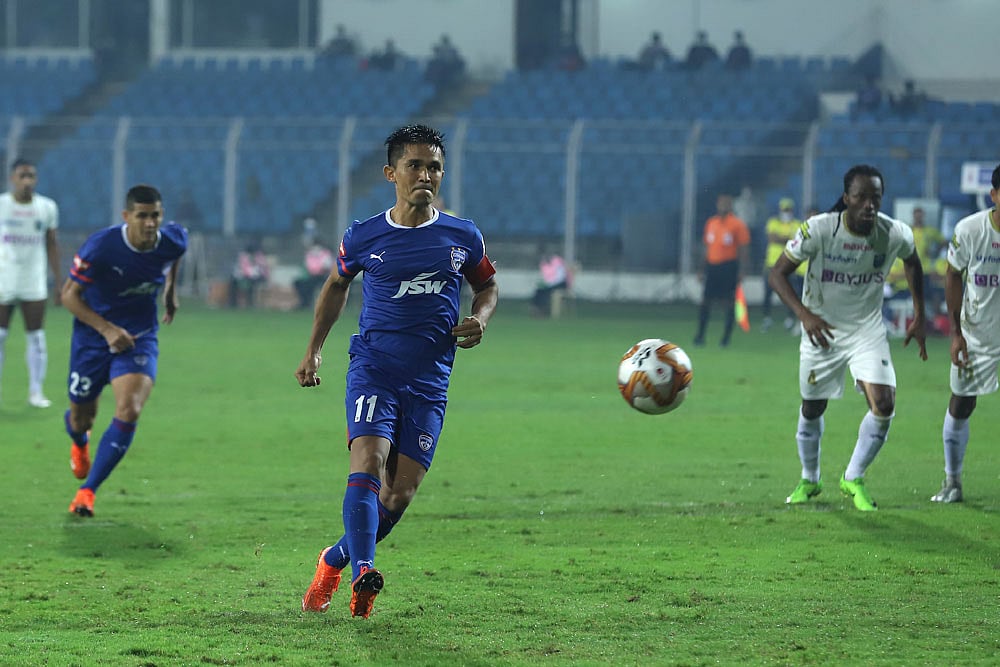 Soon after the restart, Bengaluru were awarded a penalty but Chhetri failed to score after Gomes read him correctly.