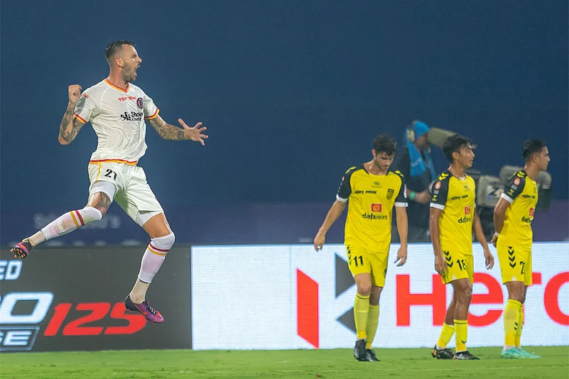However, it was East Bengal that went into the lead thanks to a powerful direct free-kick from outside the box by Dervisevic. The midfielder scored with a left-footed shot that caught Laxmikant Kattimani unaware.