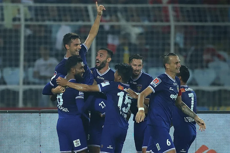 Chennaiyin then found a stoppage time goal (90+4th) through Nerijus Valskis who gave a Cristiano Ronaldo-style celebration as they jumped to fifth spot ahead of Odisha FC (25 points) with two matches left.