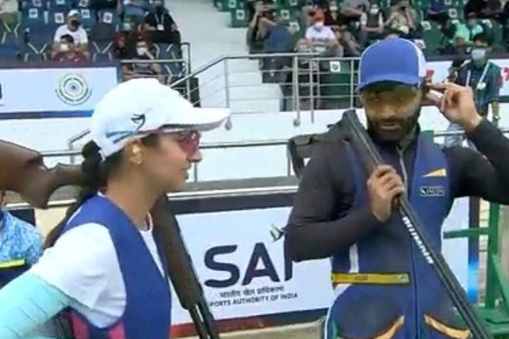 Another Indian pair of Parinaaz Dhaliwal and Mairaj Ahmad Khan, however, missed the bronze medal by a whisker at the Dr Karni Singh Shooting Range.