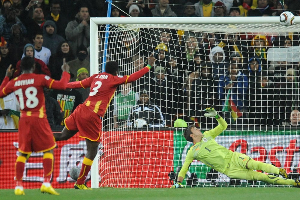 In the match, towards the end of extra time at the 120th-minute, with the scoreline stuck at 1-1, Luis Suarez was sent off for a goalline handball clearance, leading to a spot-kick for Ghana. The handball prevented Dominic Adiyiah from scoring the winner for the African nation. In came Gyan, his country's talisman to take the penalty. The former Sunderland man's penalty went straight towards the crossbar, out of Fernando Muslera's reach. Having missed the penalty, Gyan did convert his spot-kick in the shootout, but the South American side edged past 4-2 on penalties.