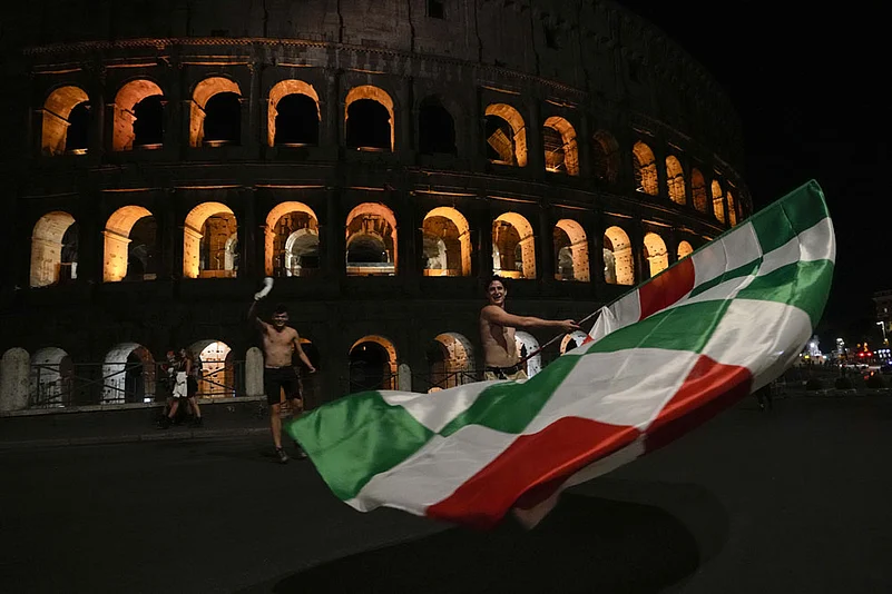 Bouncing in a huddle on the Wembley Stadium field, roared on by thousands of fans, Italy's players savored the celebrations, soaking up the scenes they have been waiting so long to experience again.