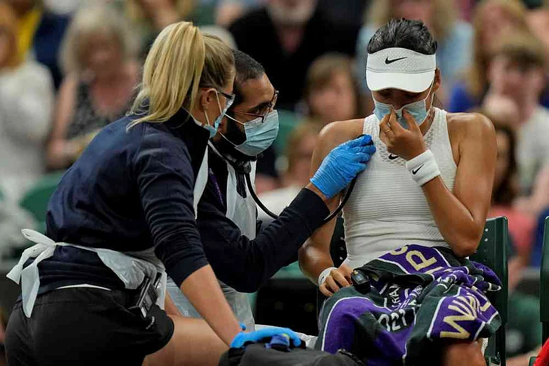 Raducanu was visited by a trainer, then left the court for a medical timeout. Eventually, the chair umpire announced the 338th-ranked Raducanu would not continue because of a health issue, but did not specify why.