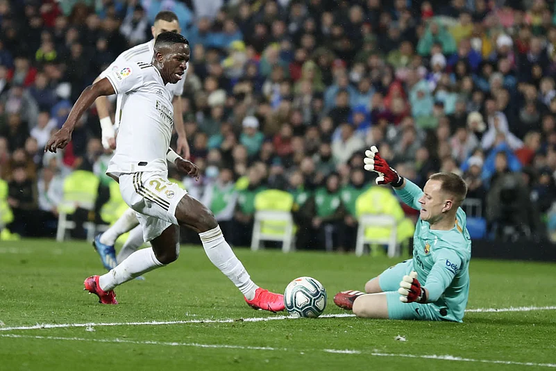 But Vinicius deservedly fired the hosts in front after being played in behind by Kroos and slotting past Ter Stegen with the aid of a telling deflection off Pique.
