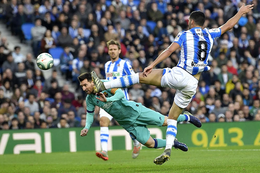 Sociedad moved ahead after 12 minutes when Sergio Busquets was penalised for tugging Diego Llorente's shirt at a corner and Mikel Oyarzabal calmly sent Marc-Andre ter Stegen the wrong way from 12 yards.