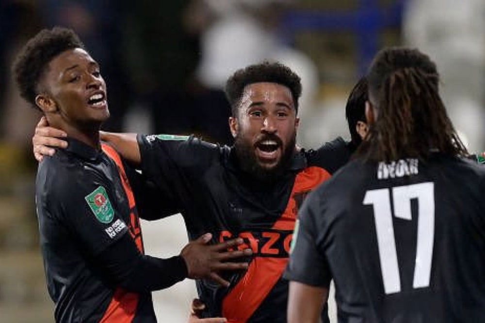 Play was briefly halted, with Oldham's players throwing the balls back into the stand behind one of the goals. They later won a penalty shootout after a 0-0 draw.