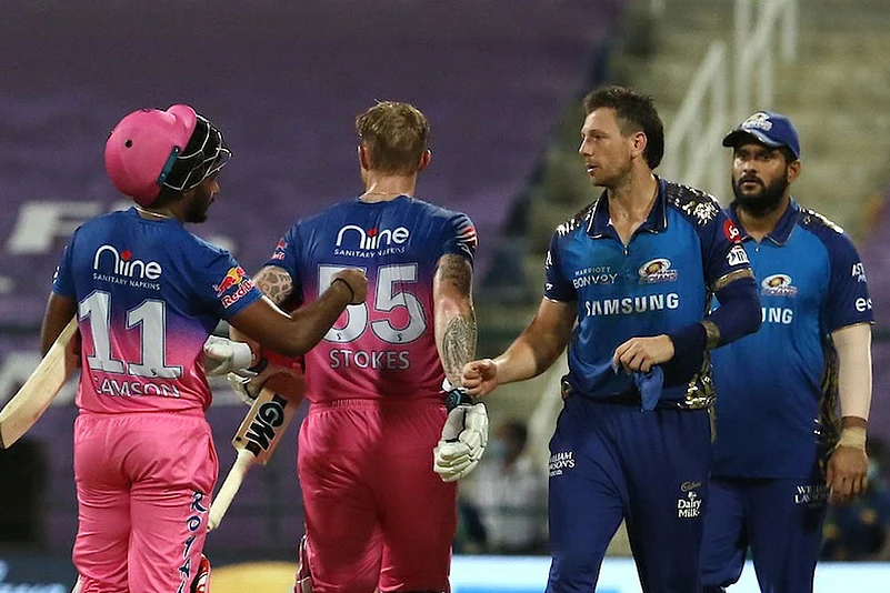 A stunning win for Rajasthan Royals (RR) with massive repercussions. The inaugural champions not only kept themselves alive in the Indian Premier League (IPL) 2020 with an eight-wicket win over defending champs Mumbai Indians (MI) in Abu Dhabi, UAE but also eliminated Chennai Super Kings (CSK). Chasing a big 196-run target, RR rode on a century-stand between Ben Stokes and Sanju Samson to canter home with eight balls to spare against possibly the best bowling attack in the tournament. Stokes, who joined the team late, hit an unbeaten ton (107 off 60, 14 fours, and three sixes) while Samson helped himself to 54 not out off 31 balls. The win, fifth in 12, helped RR to sixth place with 10 points, but MI remained top of the table with 14 points. This was MI's fourth defeat in 11 outings. CSK remained at the bottom with eight points from 12 matches. (SCORECARD | POINTS TABLE | FULL SCHEDULE)