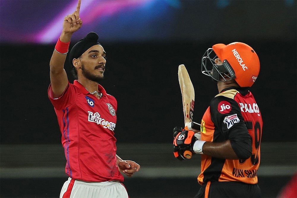 Kings XI Punjab (KXIP) kept their Indian Premier League (IPL) 2020 playoff hopes alive by winning a fourth successive match after Arshdeep Singh and Chris Jordan triggered a batting collapse for Sunrisers Hyderabad (SRH) in Dubai on Saturday. Asked to bat first, Punjab could manage only 126/7, but it proved just about enough as KL Rahul marshaled his squad brilliantly to register the lowest successful defense this season. The win helped Punjab climb to fifth place in the points table. They now have 10 points from 11 matches (five wins and six defeats). Hyderabad are sixth with eight points from an equal number of matches (four wins and seven defeats). Catch highlights here. (Highlights | Points Table | Schedule)