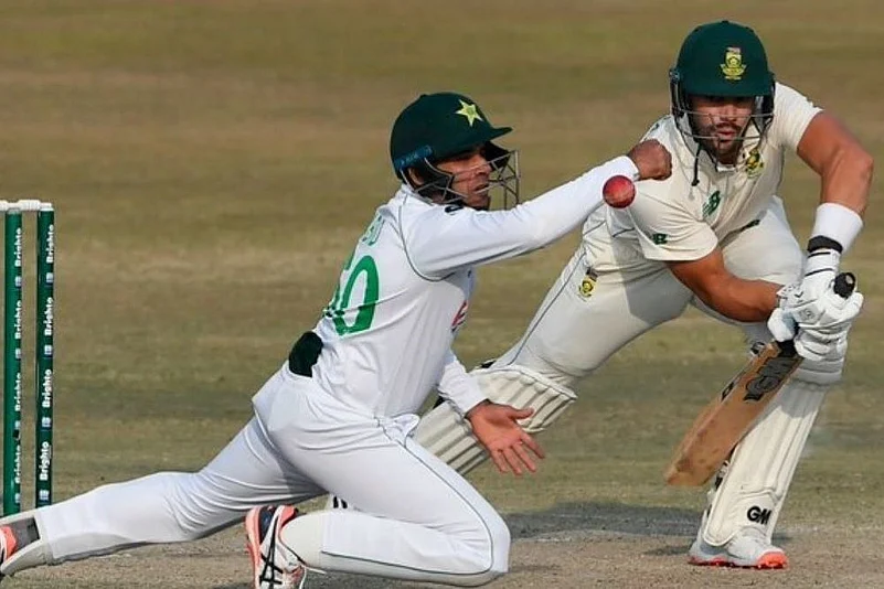 Aiden Markram and Rassie van der Dussen added 94 runs for South Africa in an unbroken second wicket stand keeping Pakistan bowlers at bay at stumps on Day 4 in the second Test at Rawalpindi. Starting the chase of 370, South Africa ran into early trouble when it lost Dean Elgar for 17. Pakistan has another three sessions on Day 5 to press for its first test series win against the Proteas in 18 years. Earlier, Mohammad Rizwan hit an unbeaten maiden century and shared a record-breaking ninth-wicket stand with Nauman Ali to set up a stiff target of 370. Rizwan smashed 15 boundaries in his knock of 115 off 204 balls in nearly five hours. At stumps, Markram was batting on 59, while Dussen was on 48.