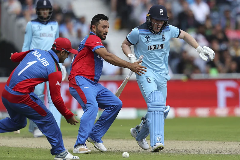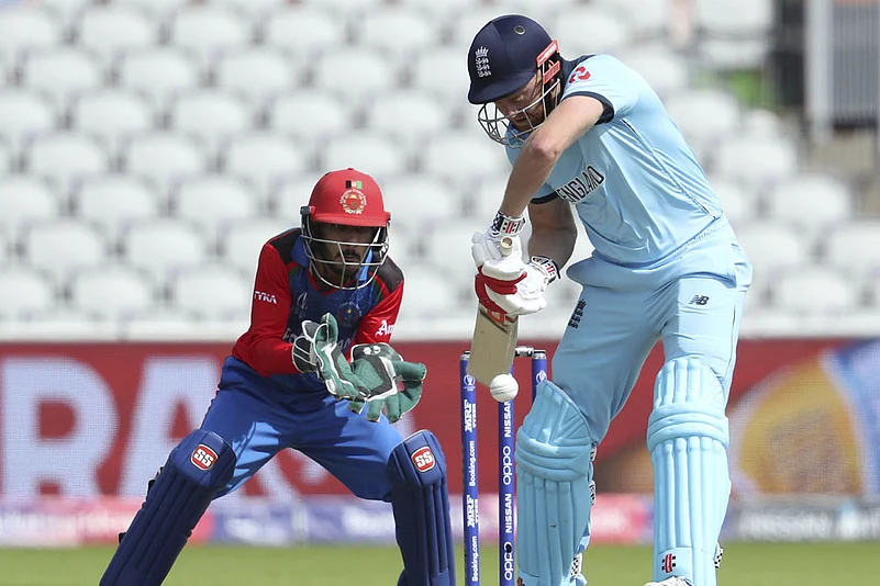 8:36 PM IST: Ben Stokes on with his fourth over. Singles off the last four balls. AFG-98/2 after 22 overs.