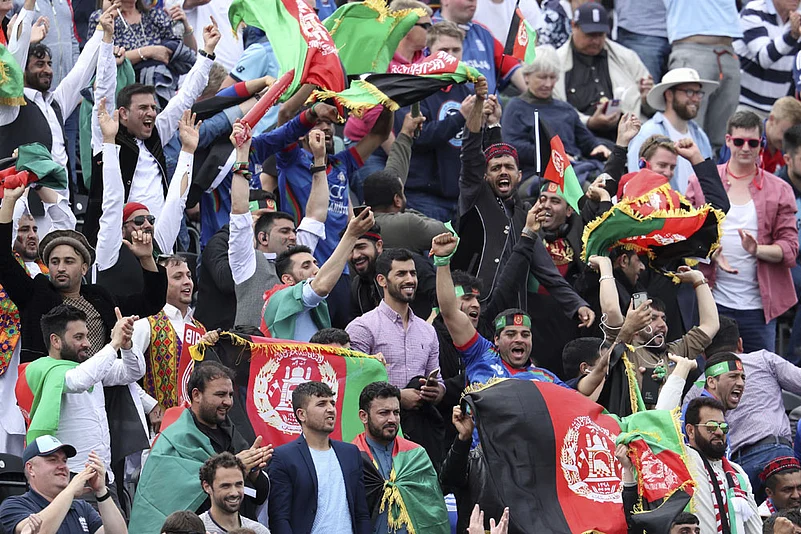 10:03 PM IST: With that six in the previous over, a new World Cup record for most sixes -- 32. The previous high was 31 between New Zealand and West Indies at Wellington in 2015. Four runs from Chris Woakes' eighth over. AFG-208/4 after 42 overs.