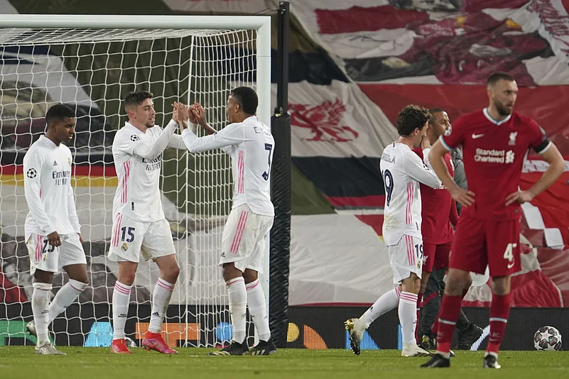 Vinicius was denied by Alisson in a one-on-one situation as Madrid's run of scoring in 23 straight knockout games came to an end. It did not matter, however, as his brace in Madrid had done enough damage to Liverpool's hopes.
