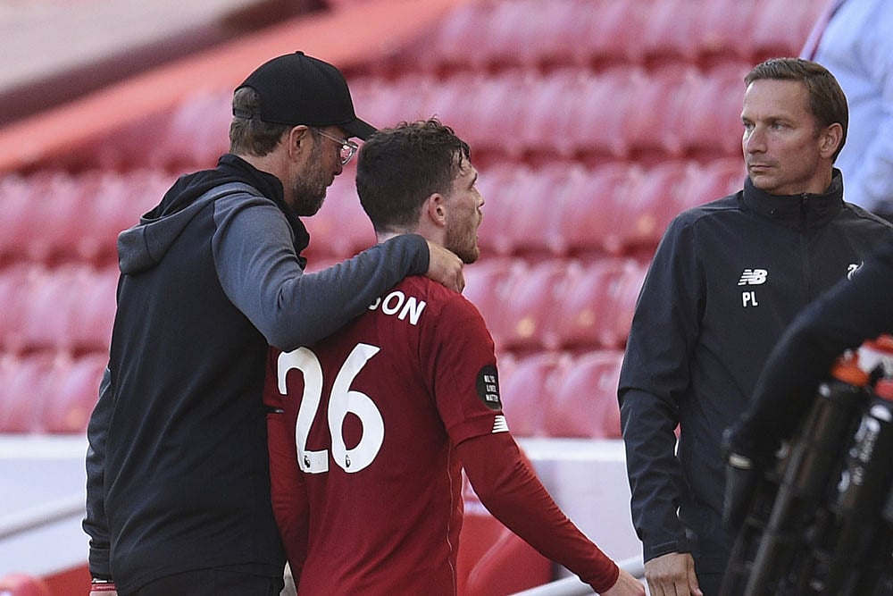 The Reds applied relentless pressure and they were rewarded after 34 minutes, Fabinho picking out Robertson with a pinpoint diagonal ball and the left-back ghosted in unmarked from the right to plant a header into the far corner of the net.