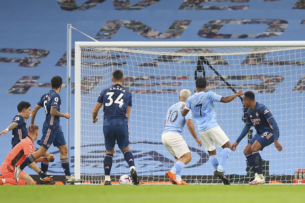 The former Leicester City favourite's astute in-field pass released Aguero to run at the Arsenal defence in the 23rd minute, with Phil Foden's resulting shot saved by Bernd Leno and tucked home on the rebound by Sterling.