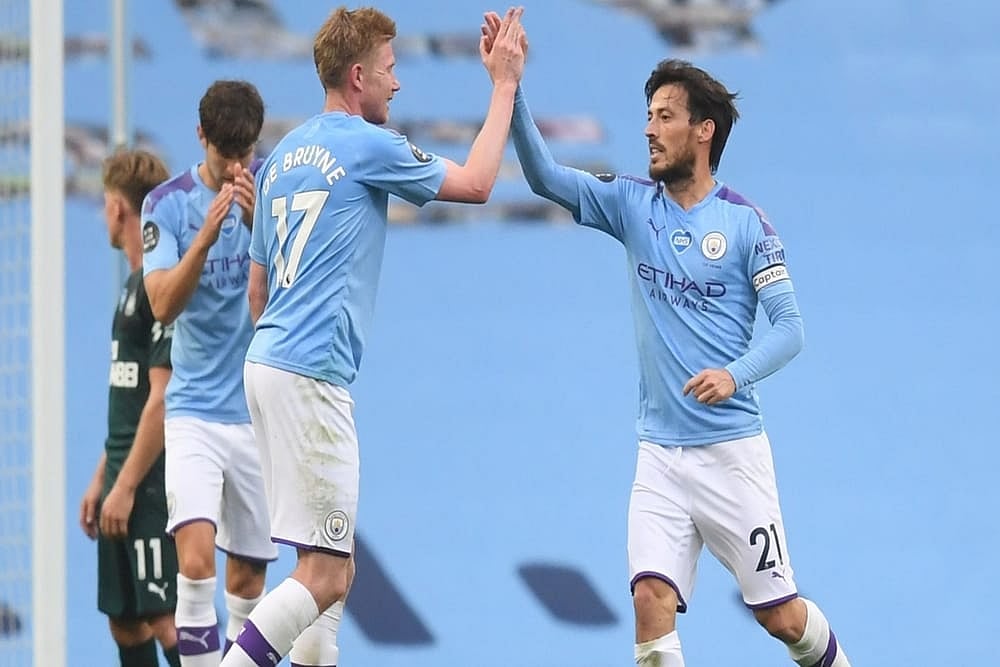 The visitors were unable to cope with City's high press and, when they lost the ball again 35 yards out, De Bruyne ran onto Phil Foden's simple pass and squared for Mahrez to side-foot home.