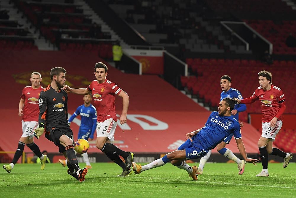 But David de Gea gifted Everton a route back into the match following the restart when he dropped Calvert-Lewin's tame shot at the feet of Doucoure, who halved the deficit.