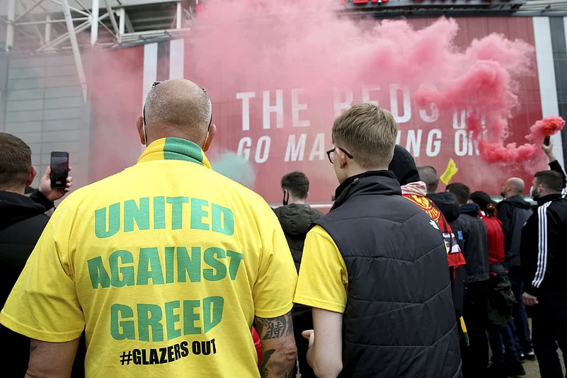 United's game against Liverpool was postponed after demonstrations outside the team's hotel and then inside the stadium.
